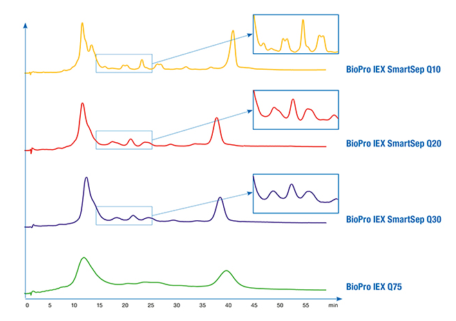 MCSGP is an interesting alternative for purifying mixtures of substances where cost-effectiveness is important. In classic batch chromatography, purity and yield often compete with each other. In MCSGP applications, both are achieved simultaneously. Therefore, highly efficient stationary phases like YMC-Triart Prep C8-S are the perfect choice.